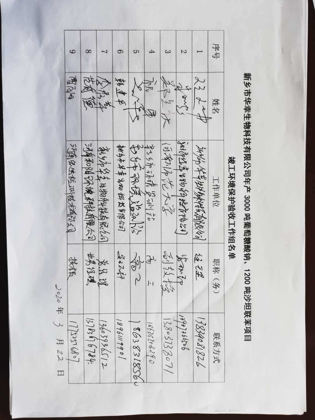 依據(jù)國(guó)務(wù)院第682號(hào)文頒布的新《建設(shè)項(xiàng)目環(huán)境保護(hù)管理?xiàng)l例》和原環(huán)境保護(hù)部國(guó)環(huán)規(guī)環(huán)評(píng)[2017]4號(hào)文公告的《建設(shè)項(xiàng)目竣工環(huán)境保護(hù)驗(yàn)收暫行辦法》的相關(guān)要求,新鄉(xiāng)市華幸生物科技有限公司于2020年1月20日在新鄉(xiāng)市華幸生物科技有限公司廠區(qū)召開會(huì)議,對(duì)新鄉(xiāng)市華幸生物科技有限公司年產(chǎn)30000噸葡萄糖酸鈉、1200噸沙坦聯(lián)苯項(xiàng)目進(jìn)行竣工環(huán)境保護(hù)驗(yàn)收。會(huì)議成立了驗(yàn)收工作組,成員由建設(shè)單位新鄉(xiāng)市華幸生物科技有限公司、驗(yàn)收檢測(cè)單位河南和陽環(huán)境科技有限公司、河南宏達(dá)檢測(cè)技術(shù)有限公司的代表及邀請(qǐng)的技術(shù)**組成(驗(yàn)收工作組名單附后)。會(huì)前,驗(yàn)收工作組成員對(duì)工程主要生產(chǎn)設(shè)施、環(huán)保設(shè)施進(jìn)行了現(xiàn)場(chǎng)檢查,會(huì)議聽取了建設(shè)單位關(guān)于項(xiàng)目建設(shè)情況及竣工環(huán)保工作的情況介紹、竣工環(huán)保驗(yàn)收監(jiān)測(cè)報(bào)告編制單位關(guān)于驗(yàn)收監(jiān)測(cè)工作技術(shù)匯報(bào),查閱了竣工環(huán)保驗(yàn)收監(jiān)測(cè)報(bào)告,核實(shí)了有關(guān)資料。經(jīng)過認(rèn)真審議與討論,形成如下驗(yàn)收意見: